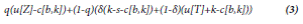 Por motivos de sencillez en el modelo, asumimos que la función de utilidad es lineal en el ingreso y toma la forma de: