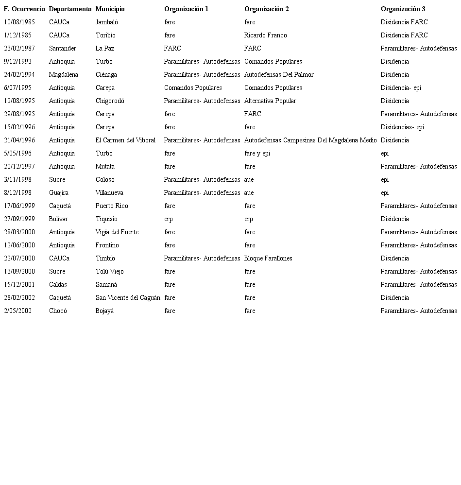 Otro caso importante en este análisis ocurre bajo un contexto similar pero se refiere más a la alianza entre paramilitares de las Autodefensas Campesinas de Córdoba y Urabá (ACCU) y un frente de las FARC-EP. En esta ocasión, Fidel Castaño tratando de evitar la derrota ante el EPL, buscó contactos con dirigentes del Frente V de las FARC-EP -que influía en el Urabá- y les propuso acuerdos territoriales y militares para reducirlo (Velásquez, 2007).