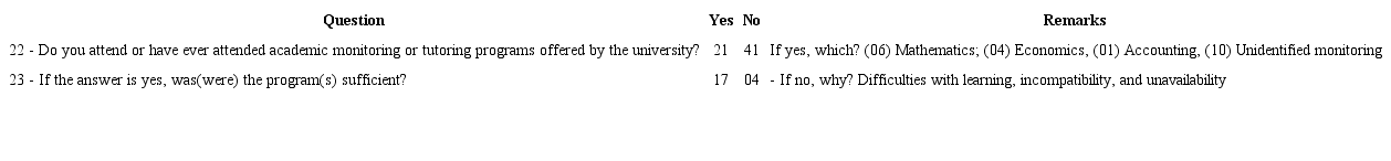22.Do you attend or have ever attended academic monitoring or tutoring programs offered by the University? ( ) Yes. Which?