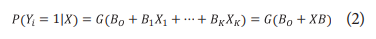La técnica del PSM inicia con la construcción del grupo control. Se han de encontrar individuos no tratados que sean similares a individuos tratados, en razón de las características del individuo, de manera que las características individuales deben ser cercanas entre estos grupos. La estimación del propensity score consiste en la estimación de un modelo de elección discreta que permita modelar la variable de participación en el programa, condicionado a un vector de características individuales. El modelo de participación o propensity score se define como un modelo de respuesta binaria en el que el interés está en la probabilidad de respuesta, tal como se muestra en la ecuación (1).