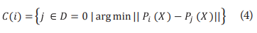 Una vez conocido el SC, se procede a calcular el PSM mediante el procedimiento de vecino más cercano, el cual consiste en tomar a cada individuo del grupo de tratamiento (para el que D = 1) y buscar un individuo de control (para el que D = 0), con la probabilidad de participación más cercana. Suponiendo que no hay empates, el vecino de control más cercano, C(i), del individuo de tratamiento estaría dado por la ecuación (4):