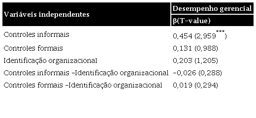 Na segunda hipótese, avaliou-se o papel mediador da identificação organizacional na relação entre controles formais e informais e o desempenho gerencial. Os achados demonstraram que a identificação organizacional não reforçou o efeito dos controles formais e informais no desempenho gerencial, o que demonstra que o nível de identificação dos gestores das empresas familiares investigadas é baixo.