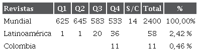 Los datos anteriores muestran que, en comparación con el contexto mundial, las revistas latinoamericanas y colombianas que abordan las temáticas de CEAC tienen una insignificante participación, tanto en cantidad como en impacto. Por tanto, es claro que este tipo de revistas no están tomando parte de manera exitosa en la conversación internacional sobre estas áreas de estudio.