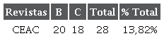 Las revistas latinoamericanas están muy lejos de tener la clasificación en los primeros cuartiles. Al analizar los datos y compararlos con revistas internacionales, especialmente las europeas y norteamericanas, se encuentra que la brecha en el impacto con respecto al nivel de citación es insuperable. Los logros de las pocas revistas latinoamericanas en CEAC pueden reducirse a haber alcanzado, en su gran mayoría, una clasificación en los cuartiles inferiores y algún impacto en las mediciones internacionales, con la excepción de un solo caso en la región. En consecuencia, podría decirse que las publicaciones latinoamericanas y colombianas asociadas a las temáticas en CEAC tienen un insignificante impacto a nivel internacional. Si se han realizado esfuerzos para lograr que estas revistas tengan un mayor impacto a nivel internacional, estos han sido claramente insuficientes.