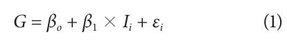 Donde G representa la variable dependiente, el gasto o consumo familiar anual en pesos colombianos de 2022. Como variables explicativas se tienen: I, que es una variable continua que representa el ingreso familiar anual en pesos colombianos después de impuestos (al tratarse de economías familiares rurales se tuvo en cuenta el impuesto predial de la finca). La variable estocástica εί es el término de error del modelo con εί ~ N(0, σ2). Los parámetros e¡ son los cambios marginales del modelo; βo representa el consumo autónomo, que no depende de ninguna variable y el β1 será la PMgC, donde se espera, en coherencia con la teoría, que este sea un valor positivo entre 0 y 1. Se empleó el método de estimación de máxima verosimilitud (MLE por sus siglas en inglés) para calcular los parámetros