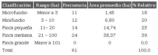 En la muestra predominan, en este orden, fincas medianas, fincas pequeñas, minifundios y microfundios (tabla 2).
