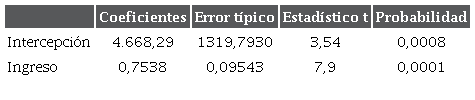 La razón de verosimilitud indicó que el modelo lineal por MV fue significativa (xc2 = 44,012 > 5,99). Con un nivel de significancia del 1 %, los parámetros obtenidos fueron estadísticamente relevantes. La PMgC en el promedio es el coeficiente de la variable ingreso, es decir, 0,7538. Esto significa que, por cada $1 000 de ingreso familiar, se disponen de $216,2 pesos para el ahorro. Con ello, se corrobora el planteamiento de la teoría keynesiana. De esta manera, los ingresos de los 61 hogares suman $789 720 000 anuales, lo que supone un gasto de $595 290 936 según la PMgC hallada, que en un año alcanza un ahorro potencial de $194 429 064. Por hogar, esto corresponde a un ahorro anual de $3 187 361,7 en promedio. El consumo autónomo promedio fue de $4 668 290 anuales.
