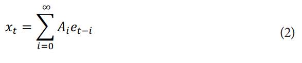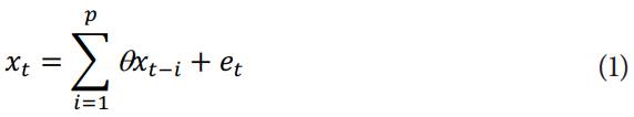 En la ecuación (1), t = 1,2,3,...N, lo que representa el número de periodos. et es un proceso de ruido blanco con media cero y varianza constante. Mientras que en la ecuación (2), Ai se denota como una matriz de NxN, descrita por Ai = θ1Ai-1 + θ2 Ai-2 + · · · + θpAp-N , donde i = 1,2,3... N y p representa el número de rezagos. Para evitar los problemas de la ortogonalización de Cholesky, se calcula un modelo VAR generalizado propuesto por Koop et al. (1996) y Pesaran y Shin (1999), que correlaciona los choques del modelo a partir de la distribución de et . Por tanto, el porcentaje de varianza propia se define como una fracción de H de la variación del error en la predicción xi, lo que está relacionado con el choque de otra variable j en el sistema. De manera que i, j = 1, 2, 3, 4. N, tal que i ≠ j.