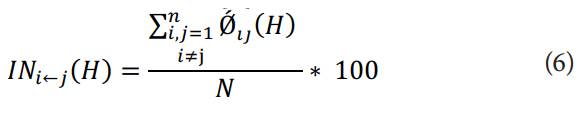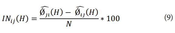 El impacto desde la variable j hacia la variable i se establece por la siguiente ecuación:
