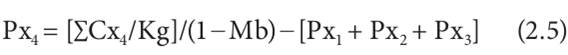Donde: Px5 es el precio de un kilogramo de pan, precio al consumidor final de la cadena.