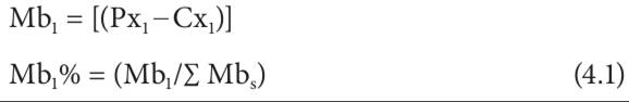 Como consecuencia, la fórmula integrada de la cadena para hallar el margen bruto promedio absoluto y porcentual de la cadena, Mb3 y Mb3%, se calcula desde la siguiente función lineal, la cual se debe dividir por el número de eslabones de la cadena de suministro (Ne); en el caso en el que se requiera hallar el margen bruto agregado, bastará con sumar los márgenes absolutos de los diferentes eslabones.