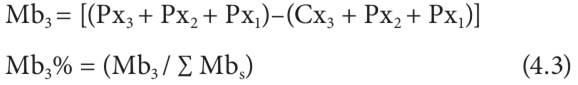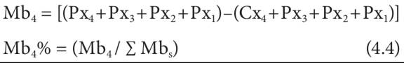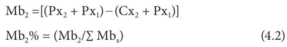 Por último, para la medición del Mb3 del eslabón de panadería se considera la acumulación de los precios de los eslabones anteriores, más el precio de venta equivalente proporcional del mismo eslabón, y se compara contra el costo unitario del eslabón de panadería, más el precio de transferencia de los eslabones de distribución, trillado y agricultura. Por otro lado, el Mb3% se obtiene dividiendo el margen bruto obtenido entre en la sumatoria de los márgenes de todos los eslabones.