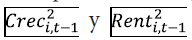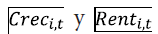 representan el Crecimiento (diferencia de logaritmos) y la rentabilidad de la empresa i en el periodo t, respectivamente, y se añaden como variables explicativas rezagadas un periodo. Igualmente,