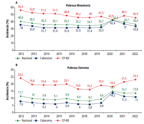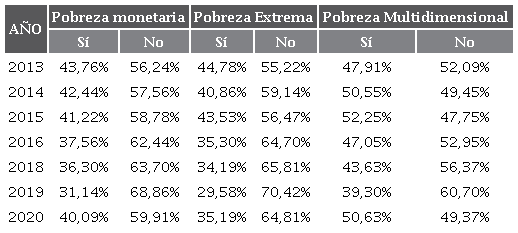 Para el cálculo de la pobreza monetaria y pobreza extrema se utilizaron las líneas nacionales de pobreza para las cabeceras y rural disperso calculadas por el DANE en la Gran Encuesta Integrada de Hogares (GEIH), por eso los datos pueden diferir ligeramente de los oficiales.