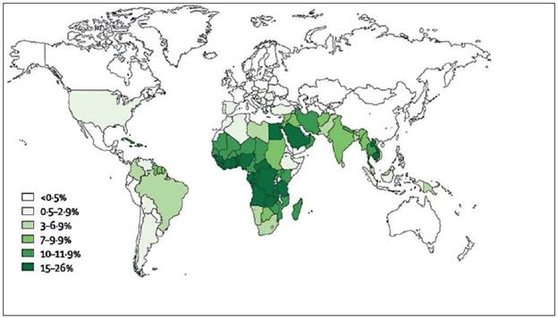 El daño enzimático se relaciona a un síndrome hemolítico inespecífico que se manifiesta en algunos pacientes después del tratamiento con algunas drogas o asociadas con el consumo de habas en la dieta (favismo). Se ha observado una alta incidencia en personas de raza negra y algunas poblaciones de judíos, sin embargo, su distribución es panétnica, con una mayor prevalencia en zonas endémicas de malaria (Ver figura 3), estableciendo con este último aspecto, una singular protección a sus portadores frente a esta patología 12-14.