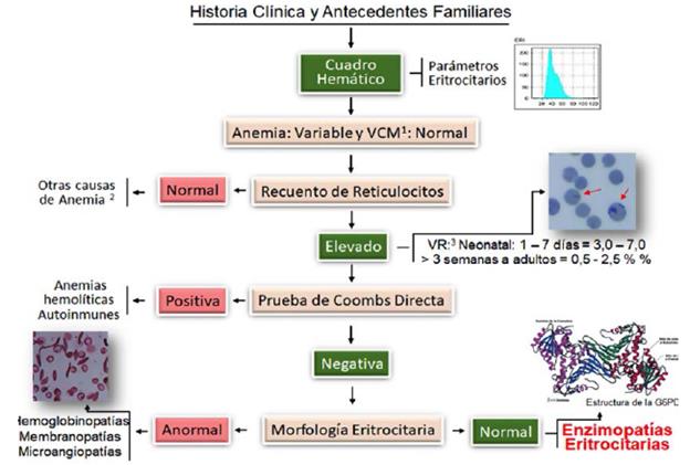 Las enzimopatías eritrocitarias, abarcan un número importante de enfermedades metabólicas que afectan la vida media de los glóbulos rojos expresándose como una anemia hemolítica generalmente de carácter episódico no relacionada a procesos de autoinmunidad sino a fenómenos de estrés oxidativo. Dentro de este grupo de anormalidades Bioquímicas, se encuentra la deficiencia de Glucosa-6-fosfato Deshidrogenasa (G6PD: EC1.1.1.49), considerada una de las alteraciones enzimáticas de mayor prevalencia a nivel mundial 6,7.
