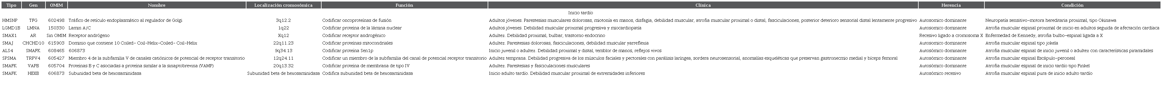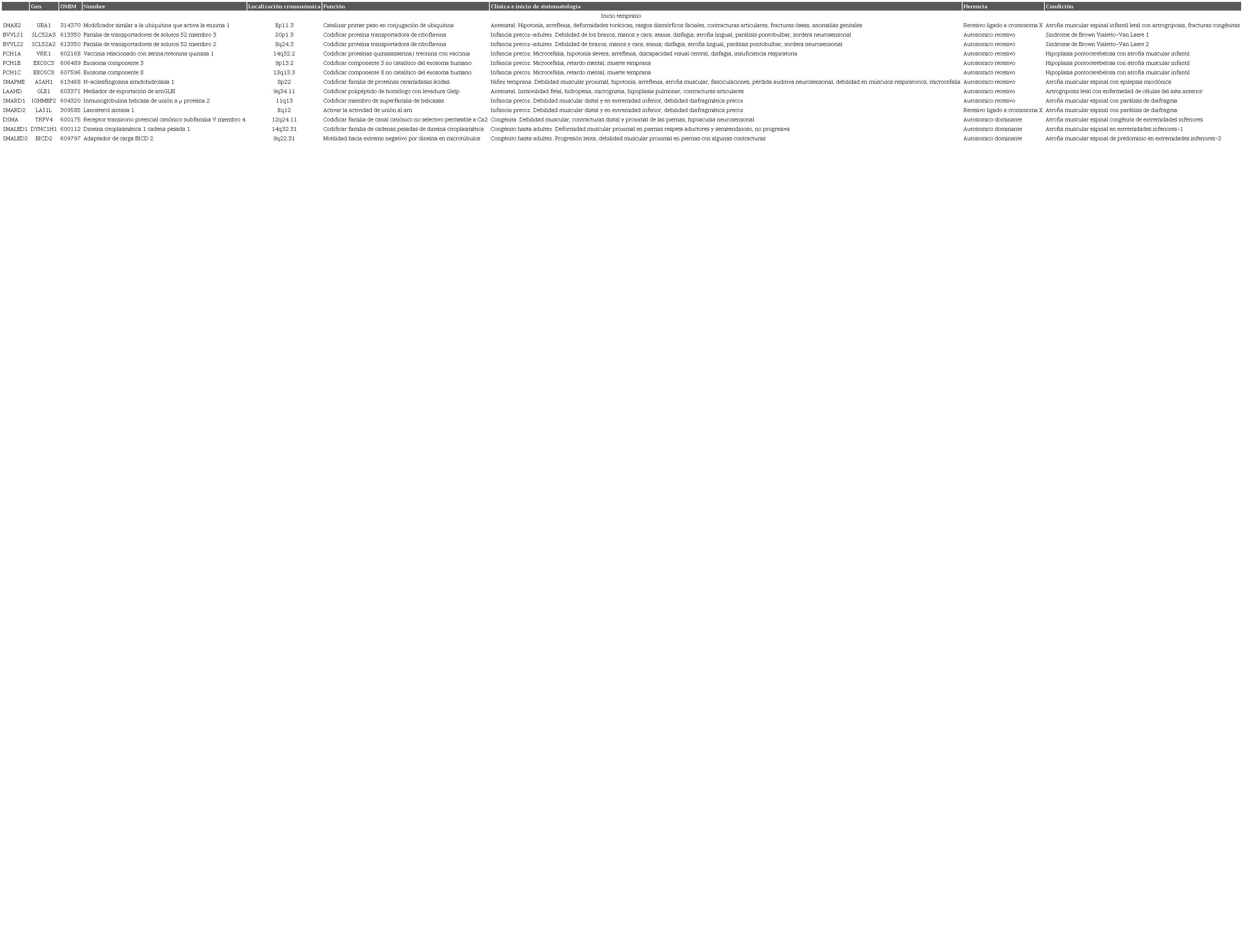 Los genes asociados con la AME no 5q se han expandido rápidamente debido al advenimiento de las tecnologías de secuenciación de nueva generación. Suelen clasificarse genéticamente según el patrón de herencia en: autosómico dominante, autosómico recesivo o ligado al cromosoma X y la distribución de la debilidad muscular en: proximal, distal o bulbar 9-11 (tablas 1 y 2).