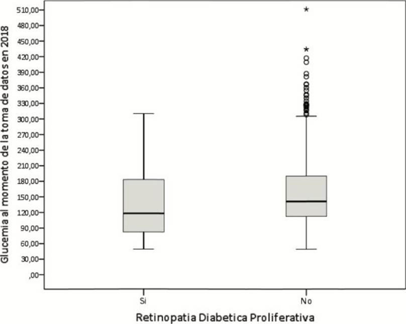 Las categorías de presencia de la retinopatía diabética proliferativa y no proliferativa presentaron distribución normal (p > 0,05).