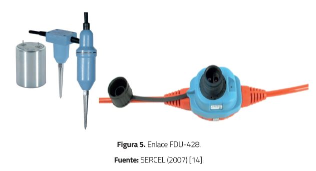 Generalmente, los geófonos se agrupan en número de doce por estaca topográfica o ristra (seis a cada lado) para conformar una FDU; existen ventajas teóricas para el uso de varios geófonos por grupo, entre ellas se tienen las eléctricas, las estadísticas, el principio de superposición y la atenuación de ruido coherente, y la formación de patrones. Como se muestra en la Figura 5, los sensores se conectan directamente a las FDU para eliminar cualquier ruta analógica significativa y garantizar su posición vertical con respecto a la superficie del suelo.