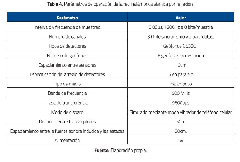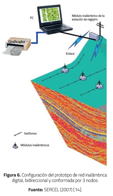 Como se indicó en el desarrollo del artículo, debido a que la estrategia de prospección sísmica por reflexión alámbrica es onerosa y laboriosa porque requiere un despliegue logístico de cierta importancia, se diseñó y experimentó desde el laboratorio con una red inalámbrica (con módulos XBEE) que cumpliera las mismas funciones, además de la realización de algunas pruebas de ajuste de posición de los geófonos. Se logró transmitir información confiable, aprovechando las ventajas de las comunicaciones inalámbricas (fácil instalación, posibilidad de transmitir información hacia cualquier punto ubicado dentro de la cobertura de la red, ahorro de espacio y dinero al requerir menos hardware, movilidad de los terminales, etc.); sin embargo, como lo menciona Berezdivin, et al. [28], este tipo de redes también evidencia limitaciones como alcance, baja tasa de transmisión de datos y errores: por acceso, ruido, e interferencia.