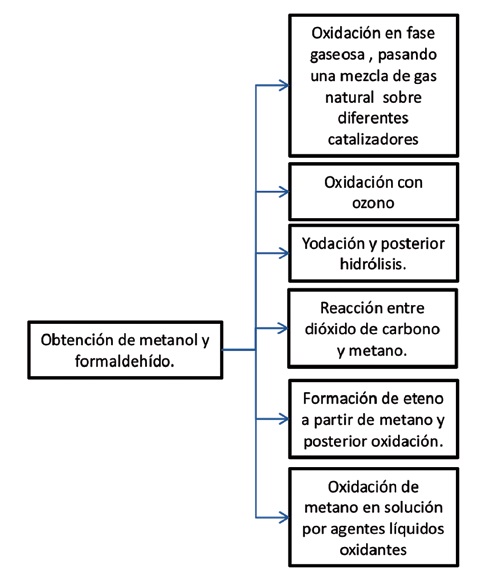 Pruebas de nuevos trabajos en cataliza-dores para la oxidación parcial de metano a metanol no fueron visibles hasta 1921, cuan-do se hizo evidente que las posibilidades de producción de metanol a partir de gas natural fueron de considerable interés para el departamento canadiense de minas [17]. Un gran número de métodos para la producción de metanol y formaldehído fueron investiga-dos (ver Fig. 1).
