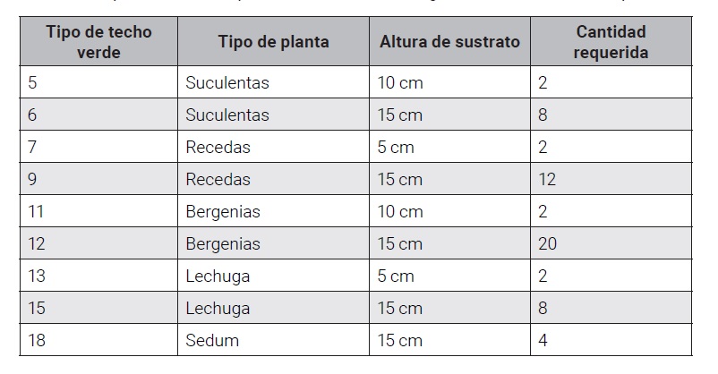 El tipo de planta es uno de los factores que contienen un valor representativo en los otros beneficios de los techos verdes que, aunque no hacen parte de la presente investigación, vale la pena resaltar, como el paisaje, la absorción de carbono y otros contaminantes del aire, la reducción del efecto de isla de calor y de temperatura en el interior de las edificaciones; además di-cha planta promueve el aumento de la biodiversidad local [7], [13].