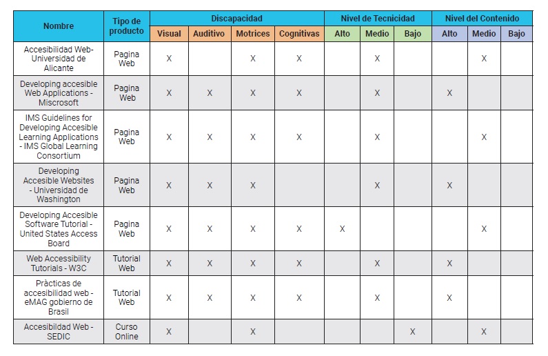 En la literatura se encuentran diferentes trabajos que realizan comparativas de normas y guías de accesibilidad; sin embargo, no se identificaron propuestas en las que se realizara un análisis de las guías prácticas de accesibilidad, teniendo en cuenta criterios para una mejor selección de estas.