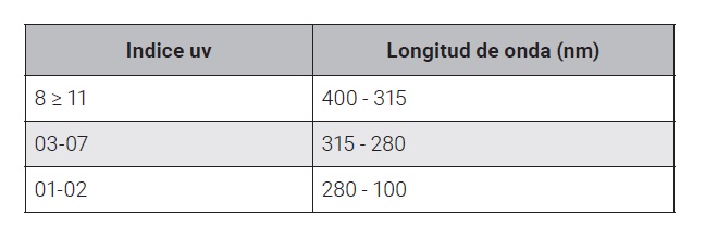 Al obtener el índice de radiación se determina la longitud de onda correspondiente (ver Tabla 4).