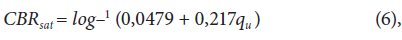 donde CBRsat es el valor del CBR (%) en estado saturado y qu es la resistencia a la compresión inconfinada (kg/cm2).