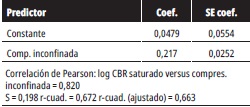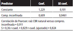 Después de verificar que el tipo de suelo y su compresibilidad no influyen en los resultados, se evaluaron modelos de regresión para encontrar una correlación entre el CBR y la compresión inconfinada, que sea aplicable para cualquier tipo de suelo y compresibilidad. Se utilizó el paquete estadístico Minitab [21]. En esta sección, se discuten estos modelos de regresión para el CBR natural.