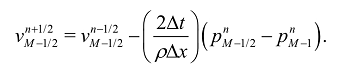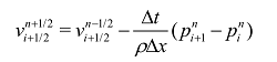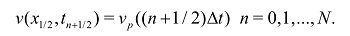 Empleando la fórmula (8), la velocidad en el punto x M-1/2 está dada por: