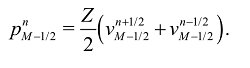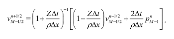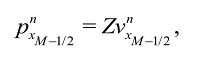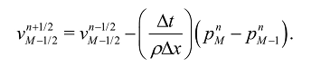 La fórmula (12) exige el cálculo de la presión en el punto x M-1/2, donde la presión no está definida. Empleando la condición de frontera (4):