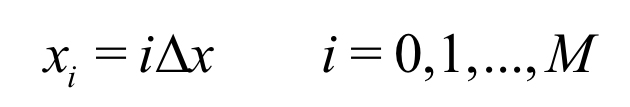 Para calcular una aproximación numérica de la solución del sistema de ecuaciones diferenciales (1) y (2) con condiciones de frontera (3) y (4), construimos la siguiente discretización del dominio espacio tiempo. La malla consta de los puntos: