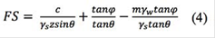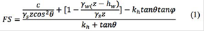 donde c es la cohesión, φ es el ángulo de fricción efectiva, Ys es el peso unitario de los materiales, θ es el ángulo de la pendiente, z es el espesor del estrato deslizable, Yw es el peso unitario del agua, kh es el coeficiente horizontal seudoestático y hw es la distancia al nivel freático medido desde la superficie.
