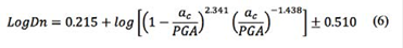 Finalmente, a partir de ac y la aceleración máxima en roca (PGA) se calculan los desplazamientos de Newmark a través de una regresión logarítmica estimada por Jibson [52](2 en la ecuación (6):