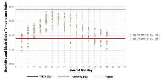 The monitoring of thermal stress that reflects thermal comfort suggests that these conditions compromise a variety of production parameters in the pigs housed in the pigpens studied, including growth, carcass composition, and reproduction. An extensive explanation of each parameter could be given, but it goes beyond the purpose of this paper.