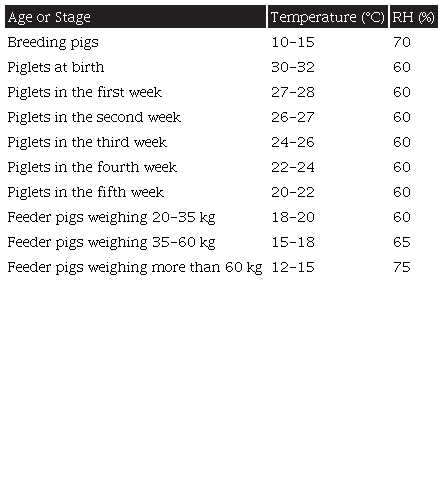 Table 1 shows the ambient temperature and RH values for pigs that are more suitable for exploitation and production [12].