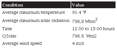 The following data of San José de Cúcuta's environmental conditions are taken from the Ideam [11]. September was selected for being the month with the most extreme climatic conditions, described in Table 2.
