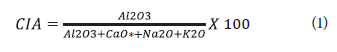 The CIA is used as a proxy of weathering grade and paleoclimatic signal to distinguish humid and arid conditions [36]-[38]. Te CIA has been employed to examine the relationship between some major elements and assume the disintegration of feldspars and further formation of clay minerals during the weathering processes [39]. We used the CIA to determine the production of detrital sediments and their contributions to sediment accumulation in the lacustrine setting of the Marriaga Swamp. Te CIA is the molecular percentage of principal (oxides) elements (Equation 1):