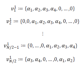 Las subseries de tendencia A1 y las de fluctuaciones D1 se definen igual que en Haar los aj son una media ponderada de los cuatro elementos consecutivos de la serie f mientras que los dj1 son una diferencia ponderada para i = 1, 2,N/2. Finalmente, de forma inductiva pueden deducirse las wavelets Daubechies de niveles superiores (dbJ) con / = 4, 5,10 [26].