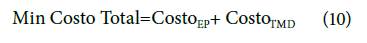 La función objetivo que define la optimización del diseño de estructuras está comúnmente asociada con la minimización del costo de la configuración estructural obtenida. En este caso, tenemos un costo asociado a la estructura principal (COS-TOEP) y un costo asociado al TMD (COSTOTMD), así: