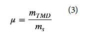 La determinación de las propiedades del TMD (masa, rigidez y amortiguamiento) para una estructura específica ha sido objeto de estudio desde hace varias décadas. Chang [6] propuso que el diseño del TMD esté basado en la relación (μ) de las masas del TMD (mTMD) y del sistema principal (ms):