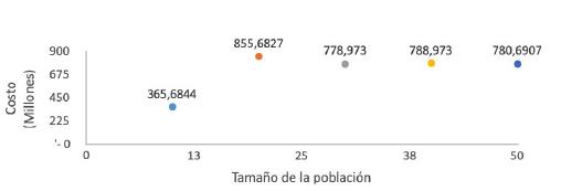 La población de individuos en los problemas de optimización juega un papel importante, pues de esta dependen las mejores respuestas. Es decir que entre más individuos se creen en cada generación, hay más posibilidades de obtener una mejor respuesta. En general, existe un límite sobre el cual la mejora de la respuesta no es apreciable con un incremento de la población, pero sí hay un incremento en el costo computacional.