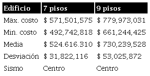 Tomando los valores de 10 ejecuciones para el edificio de 7 y 9 pisos, corridos con el sismo del El Centro, se sacó la media y la desviación estándar. En la tabla 7 se muestran los resultados. Se puede observar que la desviación estándar que hay entre todas las ejecuciones es de una magnitud baja en comparación con los costos de toda la estructura. Ello hace al algoritmo que converja de buena forma y su robustez sea buena. Sin embargo, en el peor caso, se tiene una diferencia de más de 100 millones de pesos entre el costo de la mejor y peor ejecución. Lo cual muestra la importancia de que se realicen diversas ejecuciones del algoritmo. Del mismo modo, se pueden anadir otras características al algoritmo que permitan una mayor robustez.