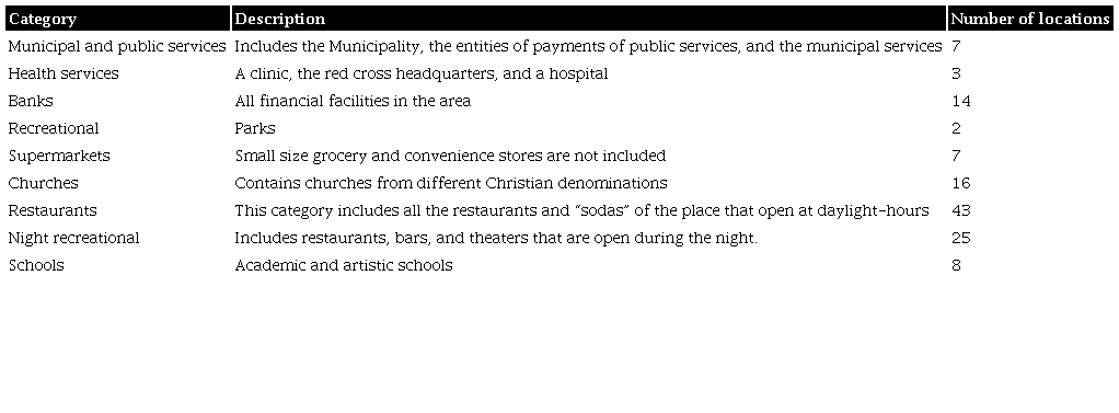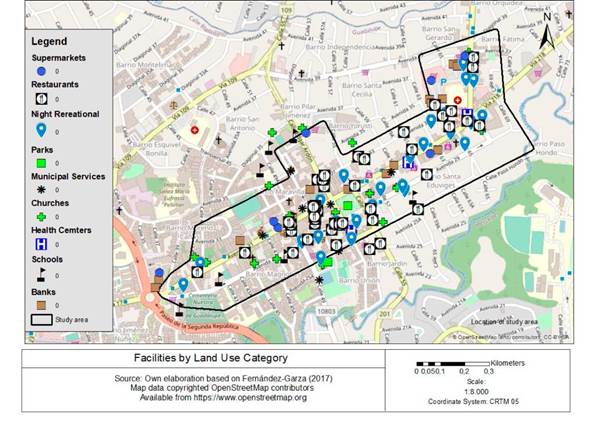 Once the groups have been established through cluster analysis, this classification is related to the location of the different facilities, categorized by land use, that may be sources of pedestrian trips, for which the possible attractors are defined below.