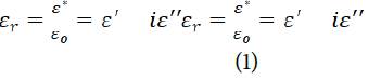 Donde ε* es la permitividad dieléctrica del material, ε o es la permitividad dieléctrica del vacío (8.8541878176x10-12 C2/N-m2)- ε’ es la constante dieléctrica del material (medida de la capacidad de polarización presente en un material dentro del campo eléctrico) y ε" es la parte imaginaria de la función dieléctrica o factor de pérdida dieléctrica (medida de la disipación de energía eléctrica en un material). La relación entre la energía perdida y la energía que se consumirá durante la polarización se denomina factor de disipación dieléctrica (tan δ; ver ecuación 2) [18].