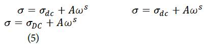 Donde A y B son constantes relacionadas con la densidad de los portadores de carga y la pseudo energía de activación, respectivamente. T es la temperatura absoluta y T0 es una temperatura característica relacionada con la temperatura de transición vitrea, Tg [19], [24]. Sin embargo, en estas ecuaciones no es clara la dependencia de o con respecto a la frecuencia angular (ω). Para tener en cuenta la dependencia de o con ω, se utiliza por lo general la ecuación 5 denominada Jonscher 's Universal Dielectric Response [25].