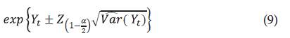 Luego, un intervalo de confianza para Yt, está dado por los límites: