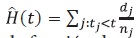 Una muestra aleatoria de tamaño n, extraída de una población, estará formada por k (k ≤ n) tiempos t1 < t2 <, ... ,< tn en los que se observan eventos. En cada tiempo tj existen nj individuos en riesgo y se observan d¡ eventos.