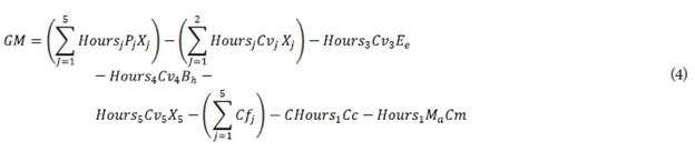 CVj = Variable cost of the production process of the product j ($/units). The units for j = 1 ($/ton), j = 2 j = 3 ($/kWh), j = 4 ($/ ton bagasse), and j = 5 ($/ton).